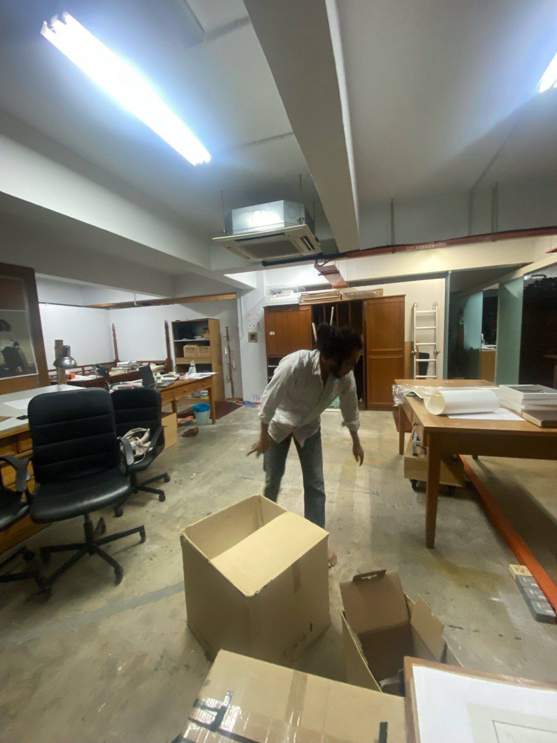 Currently in the studio, it's moving furniture day. Before Mati, this space used to house a bookmaker and publisher, so the layouts, equipments and furnishings served this purpose. Now, it's time to reorganise and revisit the Feng Shui of this space to serve ours. Contrary to the advise of acupuncturists and chiropractors I've visited (which I have only tried for the first time in my life this year. Hello mid-twenties!) the floor remains my favourite area to work. A studio that accommodates my preferences would require a carpet I can get paint on and have #NoRagrets and floor and floor and floor.