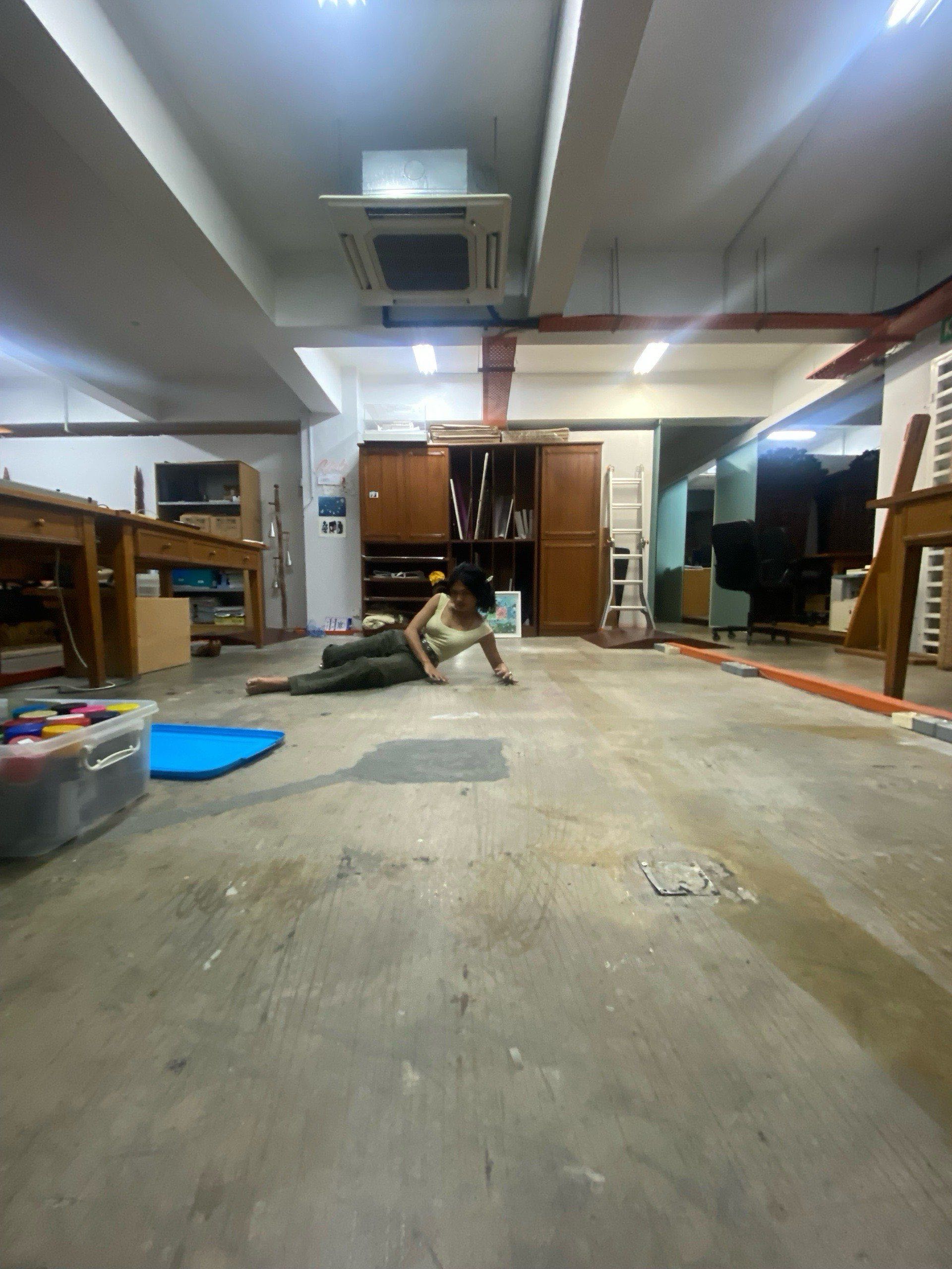 The floor can be like sky to me; vast, unending, holding different colours and shapes of clouds depending on the time of day. Before this, I was less fussy and would say yes, sure, bare naked concrete and over 12 hours of labour - What could possibly go wrong? But my tailbone disagrees. My physicality disagrees and my doctor visits get more expensive. So a rug it is. Snug and warm. Stained and spread out. To host my physicality, day in day out until I can say, Hey, it's my debut solo exhibition today.
